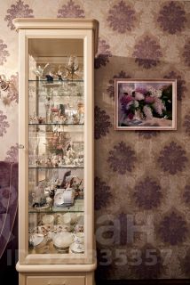 Кабинет выполнен в классическом английском стиле: бумажные обои, мебель из массива дуба, письменный стол со столешницей отделанной натуральной кожей. Вместительные шкафы и просторный комод. Может быть как кабинетом, так и прекрасной детской комнатой.