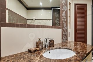 Основной санузел оснащён ванной с гидромассажем фирмы DURAVIT, просторной душевой кабиной, встроенной стиральной машиной, множеством систем хранения, мраморная столешница. Также установлен бойлер и система фильтров для воды.