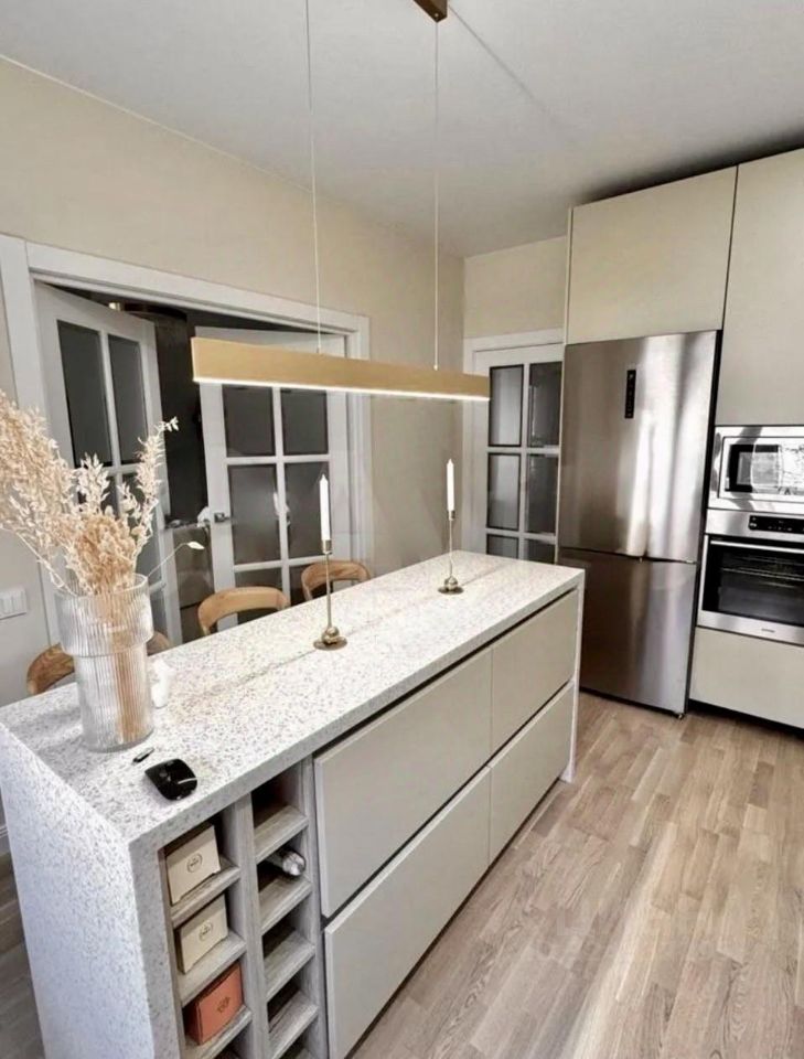 * Просторная кухня-гостиная (12.7 кв.м.) Благодаря продуманному решению с раздвижными дверями, она легко трансформируется, объединяясь с комнатой (14.2 кв.м.) для создания большого пространства для встреч с друзьями или разделяясь для уединения.