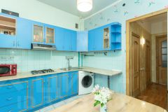 - Функциональная кухня размером 8 квадратных метров позволяет удобно расположить кухонную зону и обеденную группу.