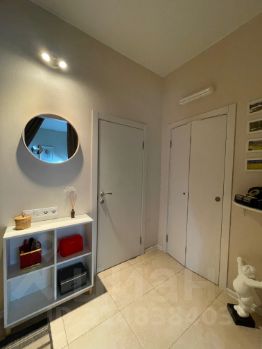 Удачная планировка: просторные комната и кухня, гардеробная, квадратная прихожая, высокие потолки.