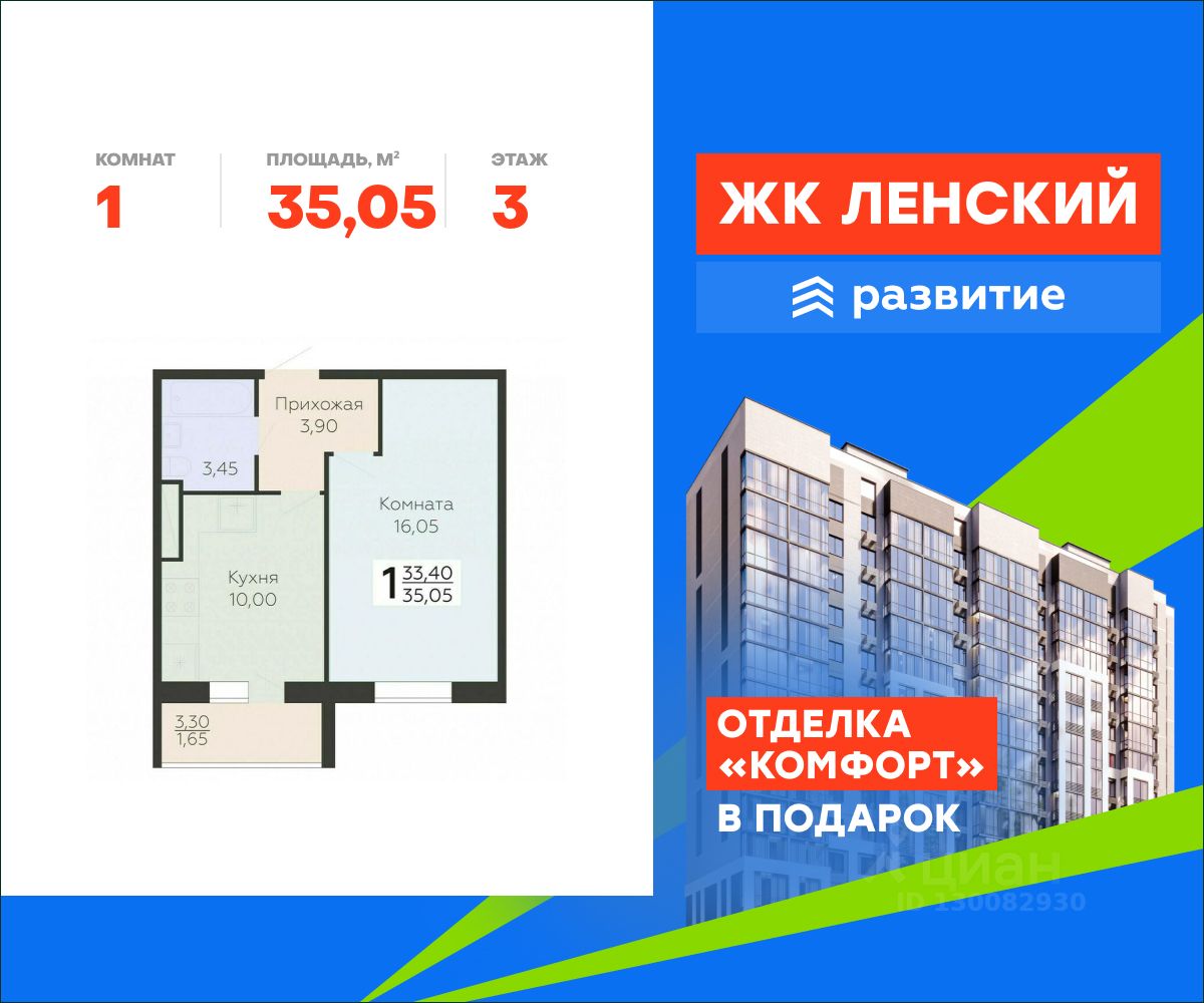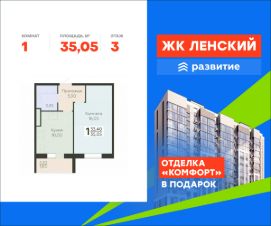 В продаже квартира площадью 35.05 кв. м с отделкой на 3 этаже 16 этажного дома. Квартира находится в 4835 корпусе: