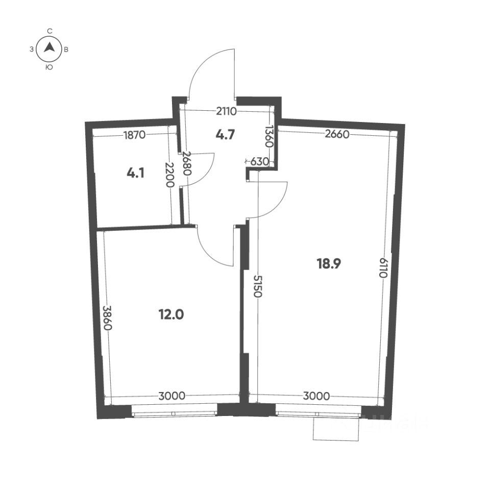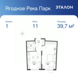 Общая площадь квартиры — 39.7 кв. м, этаж 11 из 12.