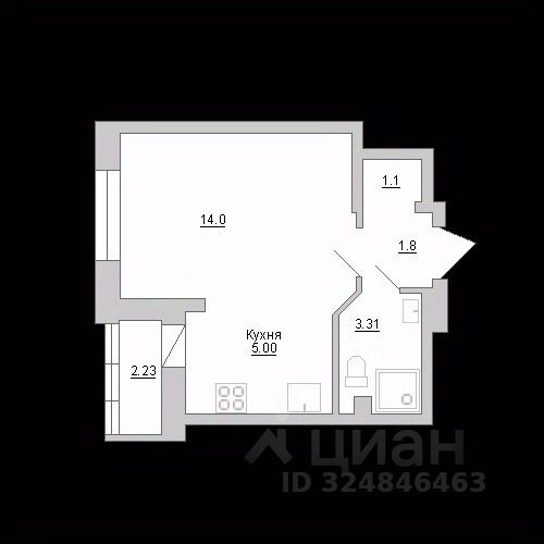 Предлагаем вашему вниманию квартиру студию, площадью 27.2м2.