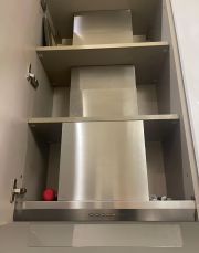 Итальянский кухонный гарнитур с итальянской вытяжкой и немецкой варочной электрической панелью.