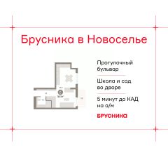 Однокомнатная квартира-студия с предчистовой отделкой в ЖК "Брусника в Новоселье" на 5 этаже. Общая площадь: 38.33 кв.м., площадь гостиной 26.3 кв.м., из которых 5 кв.м. выделено под кухонную зону. Все окна выходят на одну сторону. В квартире один балкон, один совмещенный санузел. Высота потолков 2.7 м.