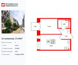 Удобная, классическая, функциональная европланировка, большая кухня-гостиная 15.57 м², вместительная прихожая 3.44 м². Общая площадь квартиры - 33.49 м², жилая 11 м², высота потолка 2.7 м.