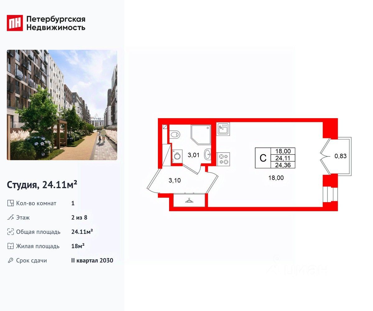 Общая площадь24,11 м²
