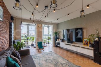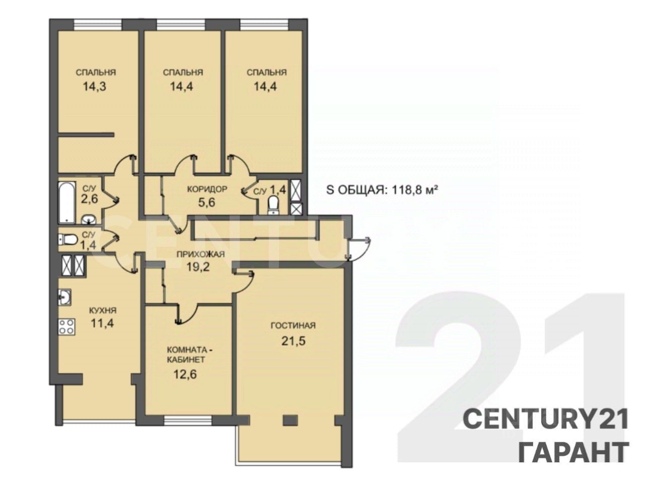 Просторная квартира, в форме бабочка, с объёмными и вместительными комнатами (21.5+14.4+14.4+14.3+12.6) м2, а из большей с ПАНОРАМНЫМ остеклением во всю стену открывается прямой вид, где можно встречать рассветы и провожать закаты со своей семьёй.