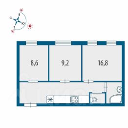 Комфортная планировка: есть возможность объединить две комнаты в общую зону.