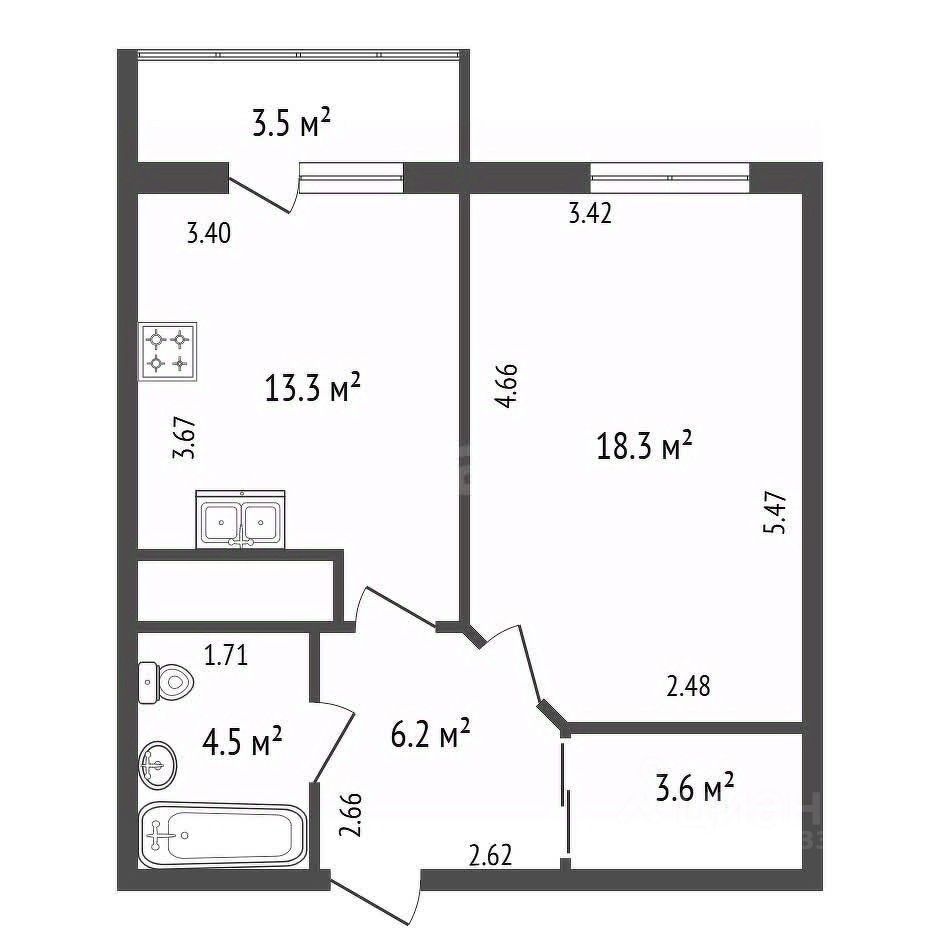 Отдельная гардеробная, застеклённый балкон — 2 м².