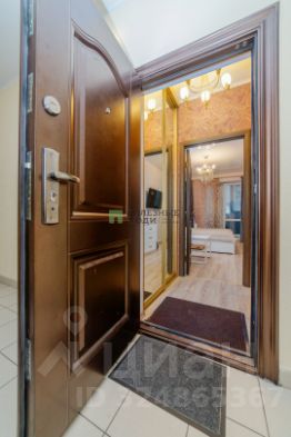 Есть отдельная гардеробная, закрытая выдвижными дверями с зеркалами. Есть обувница.
