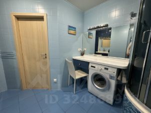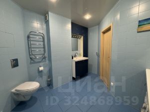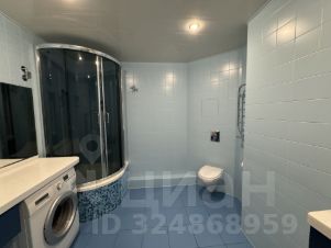 Просторный санузел площадью 7,63 м оснащен электрическим теплым полом и вентиляцией. Оборудование: душевая кабина с глубоким поддоном, навесной унитаз (инсталляция), электрический полотенцесушитель, раковина с навесным и напольным шкафами, удобная каменная столешница для сортировки белья и прочих дел.