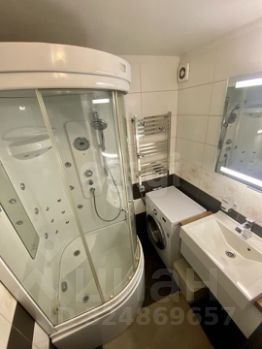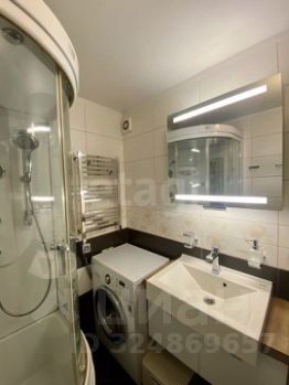 - Ванная комната оборудована душевой кабиной, стиральной машиной, настенным полотенцесушителем