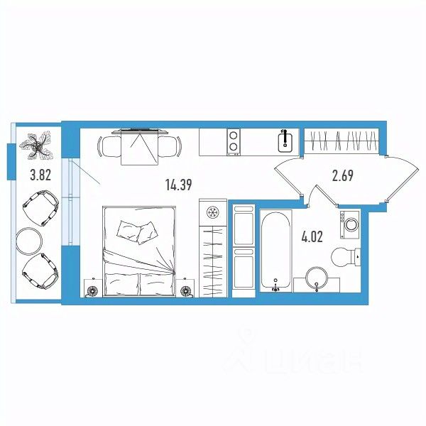 Продаётся студия в строящемся доме (Дом 1), срок сдачи: II-кв. 2027, общей площадью 22.25 кв.м., на 10 этаже.