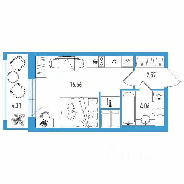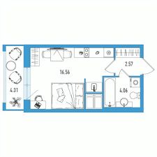Продаётся студия в строящемся доме (Дом 1), срок сдачи: II-кв. 2027, общей площадью 24.48 кв.м., на 12 этаже.