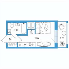 Продаётся студия в строящемся доме (Дом 1), срок сдачи: II-кв. 2027, общей площадью 20.18 кв.м., на 13 этаже.