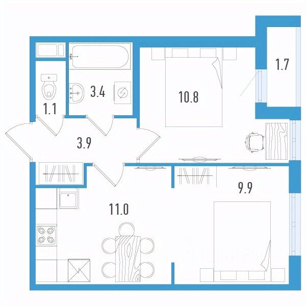 Продаётся 2-комнатная квартира в сданном доме (Старорусский пр-т, 3к2 (Дом 1)), срок сдачи: II-кв. 2025, общей площадью 41 кв.м., на 12 этаже.