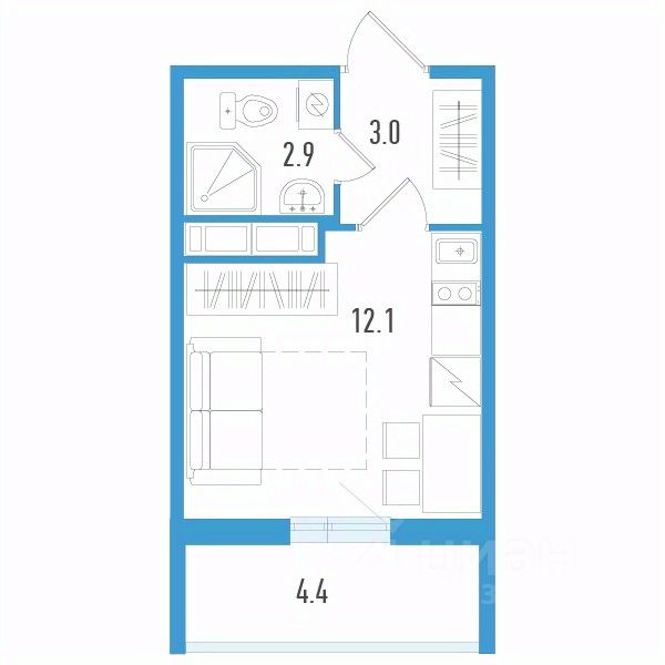 Продаётся студия в сданном доме (Старорусский пр-т, 3к2 (Дом 1)), срок сдачи: II-кв. 2025, общей площадью 19.3 кв.м., на 12 этаже.