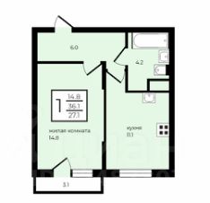 • 1-комнатная квартира расположена на 7 этаже 13-этажного дома