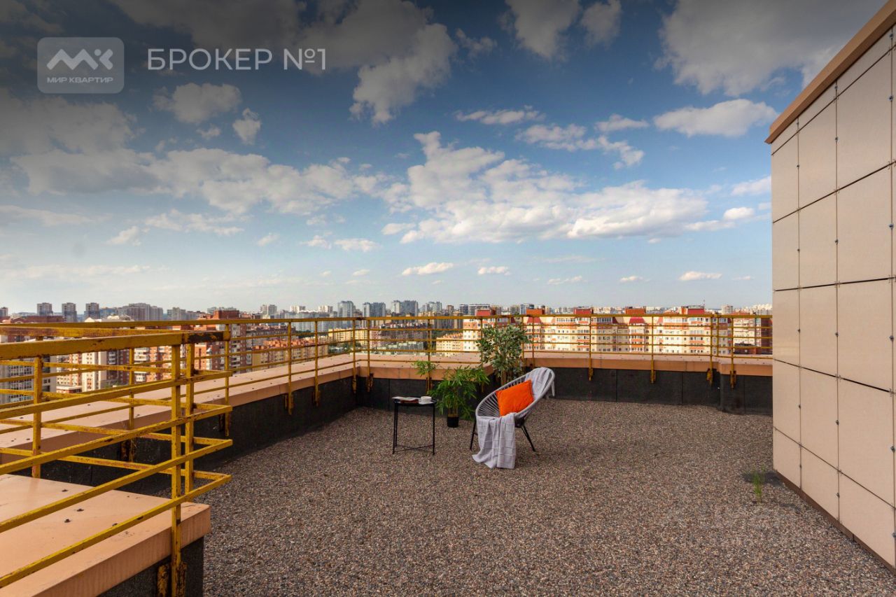 Квартира расположена на двух верхних этажах монолитно-кирпичного дома 2007 года постройки, соединенных изящной винтовой лестницей, редким преимуществом служит выход на открытую террасу -приватную кровлю площадью около 100 квадратных метров. Наличие такого пространства позволяет любоваться закатами, принимать воздушные и солнечные ванны с высоты птичьего полета.