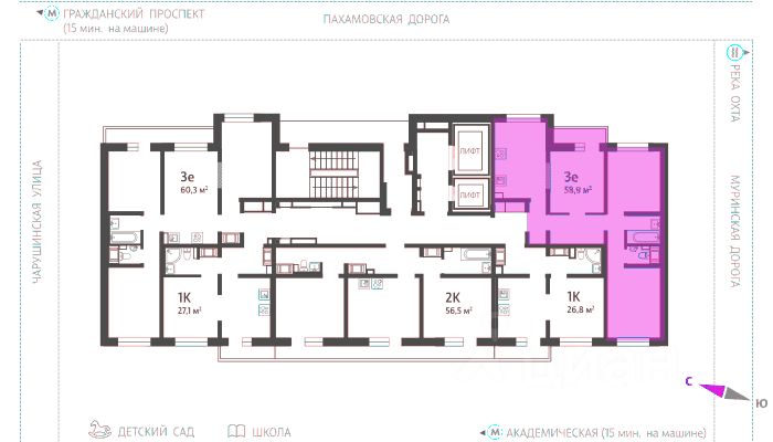 • 15 минут на авто до станций "Гражданский проспект" и "Академическая";