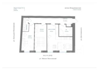 Квартира расположена в 2-х минутах от м. Владимирская на Малой Московской улице.
