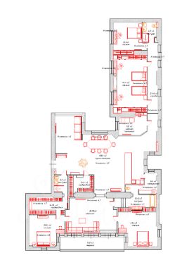 Продуманная планировка делит квартиру на три функциональные зоны, приватную зону спален с окнами во двор, коридор оснащен окнами выходят на ул. Чернышевского, большая гостевая гостиная-столовая, с зоной отдыха стена в которой выполнена в технике имитации скального рельефа, и хозяйская гостиная с зоной отдыха и огромной скалой, с выходом на террасу на ул. Чайковского. На террасе положена доска, установлен блок кондиционера. В квартире панорамные окна и виды на три стороны света и красоты Петербурга. Три отдельных сан. узла с современной сантехникой и оборудованные умными японскими унитазами. Две просторные гардеробные комнаты, отдельный хоз. блок- постирочная, оборудованная новой бытовой техникой. Просторная кухонная зона с каменной столешницей и островом который вмещает в себя всю кухонную утварь с одной стороны и переходит в уютную барную зону с другой стороны, полностью оборудованная новой техникой. Огромный обеденный стол длина 3200 с каменной столешницей.