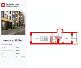 Продается просторная 1-комнатная квартира от застройщика в жилом комплексе "Univer City" в на юге Санкт-Петербурга.