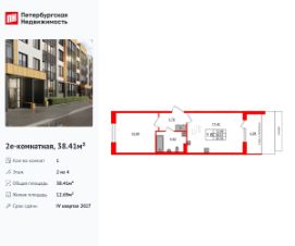 Удобная, классическая, функциональная европланировка, большая кухня-гостиная 17.42 м², вместительная прихожая 3.78 м². Общая площадь квартиры - 38.41 м², жилая 12.69 м², высота потолка 2.77 м.