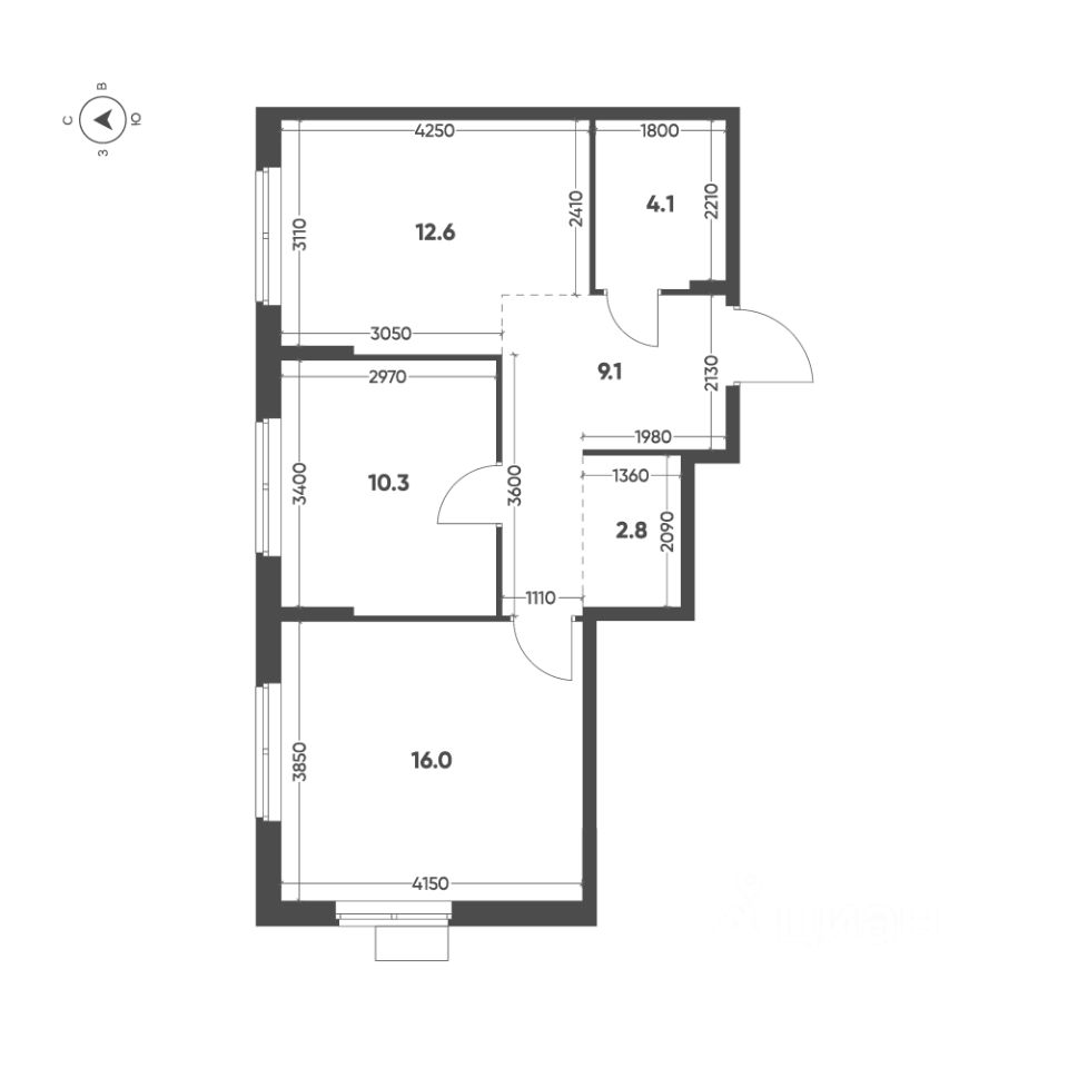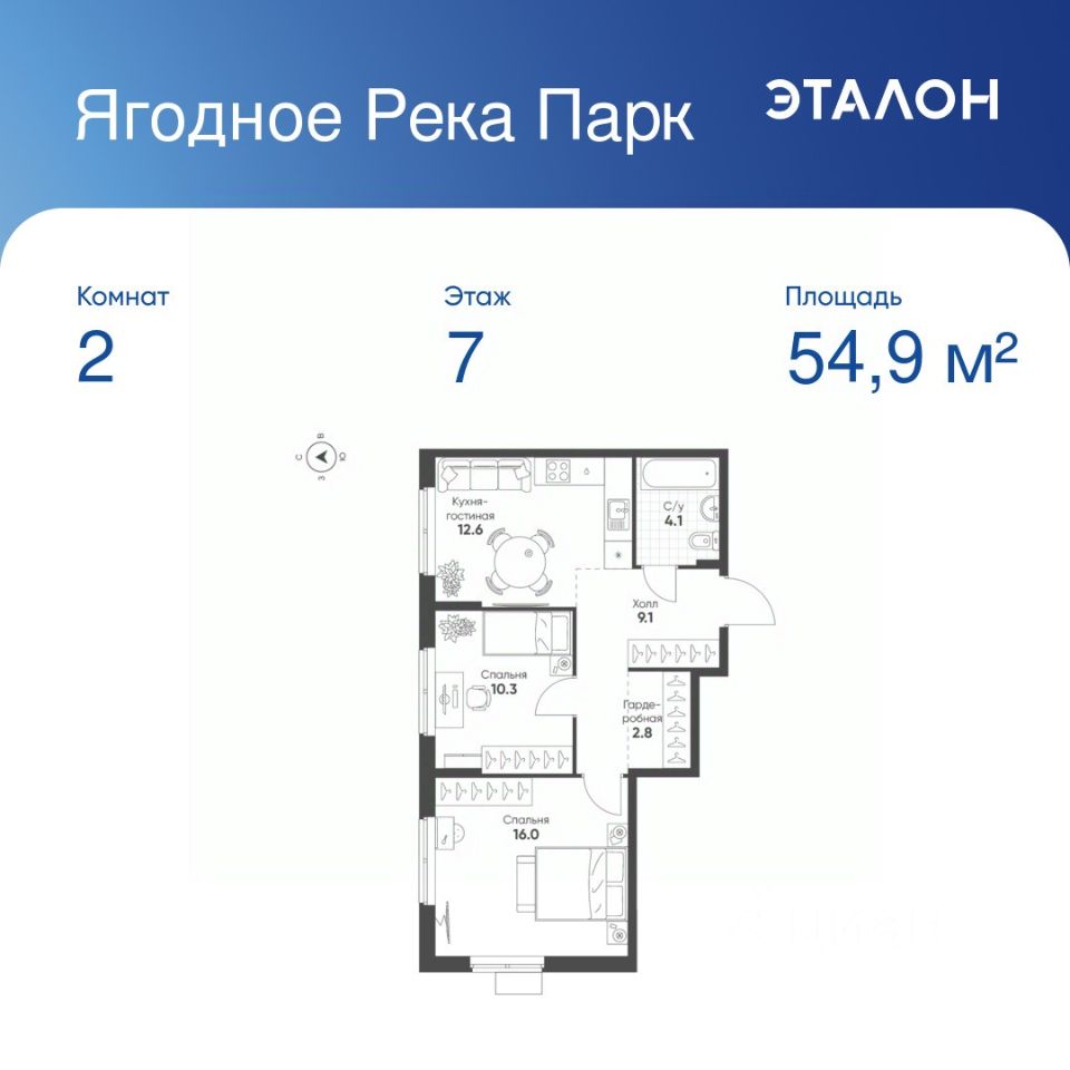 Общая площадь квартиры — 54.9 кв. м, этаж 7 из 12.
