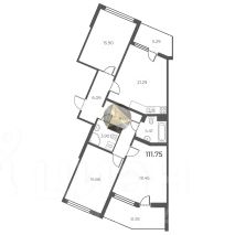 - 2 совмещённых санузла 4.41 и 3.90 м2
