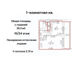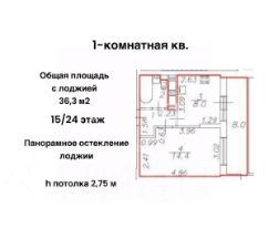 КВАРТИРА:Общая площадь квартиры составляет 36,3 м2, из которых 14,4 м2 — жилая площадь, 8 м2 — кухня, прихожая 2,6 м2, санузел 3,3 м2, просторная застекленная лоджия - 8м2, как отдельная комната!