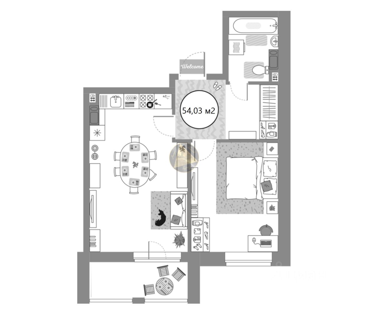 - Общая площадь квартиры 54,03 м2