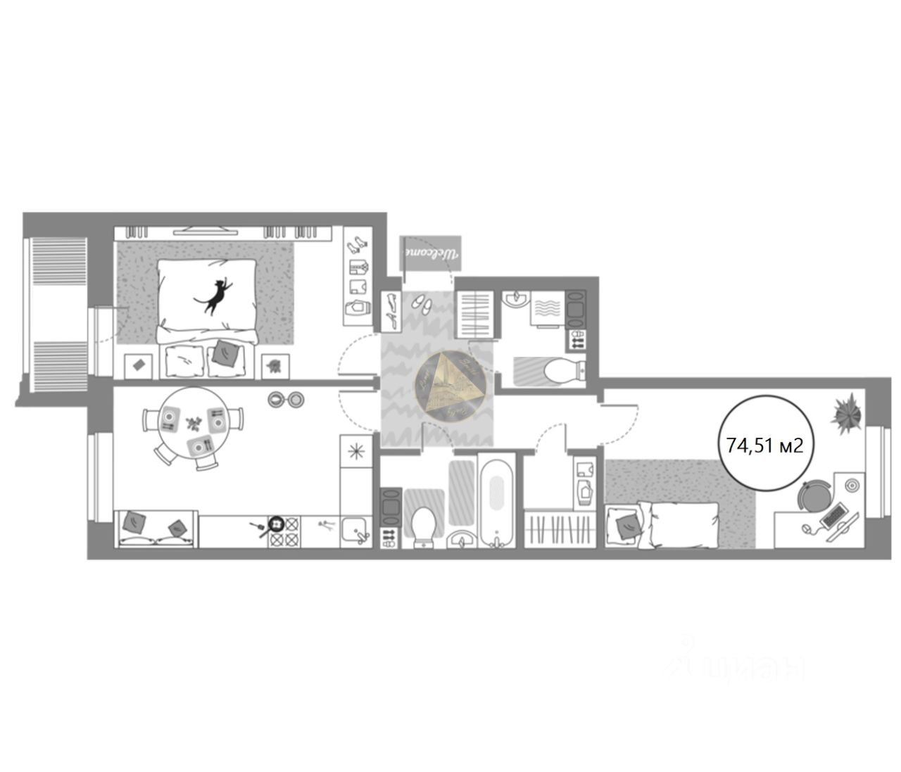 Срочно продаётся 3Е-квартира общей площадью 74,51 м2. в Приморском районе Санкт-Петербурга. Квартира находится в доме комфорт-класса, оформленном в стиле античной эстетики. Идеальный вариант для тех, кто хочет жить в стильном доме в окружении природы.
