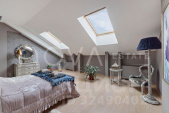 Квартира спроектирована для комфортного проживания, где на нижнем уровне находятся просторная гостиная, гостевая мастер-спальня, объединенные общей террасой, кухня-столовая, гостевой санузел и кабинет с камином. Через изящную лестницу с коваными поручнями можно подняться на верхний уровень, где размещена мастер-спальня с большой ванной комнатой, комфортабельная гардеробная и детская. Ощущение лёгкости и воздуха достигается благодаря высоким потолкам и многочисленным мансардным окнам, пропускающим много естественного света.