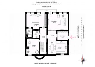 Арт. 127539666 Предлагается к покупке двухуровневый пентхаус общей площадью 283,1 кв.м на Константиновском проспекте, Крестовский остров.