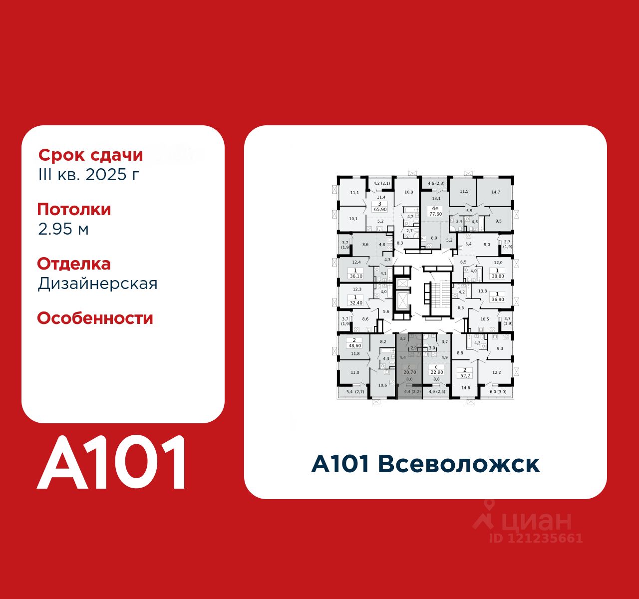 ГК "А101" - крупный инвестиционно-строительный холдинг, занимает 6-е место по объему строительства в России (по данным "Единого ресурса застройщиков" на 2023 год). НКР присвоило ГК "А101" кредитный рейтинг A+.ru, подтверждая его надежность и финансовую устойчивость для завершения строительства ЖК.