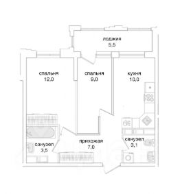Планировка удобная и функциональная: вместительная прихожая с гардеробной; просторная кухня; изолированные 2 спальни; два санузла; лоджия в 5 м2. Квартира находится на 10 этаже 13-ти этажного дома.