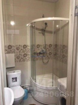 Санузел совмещенный, полностью в кафеле. Установлен душевой уголок и предусмотрено место для стиральной машины.