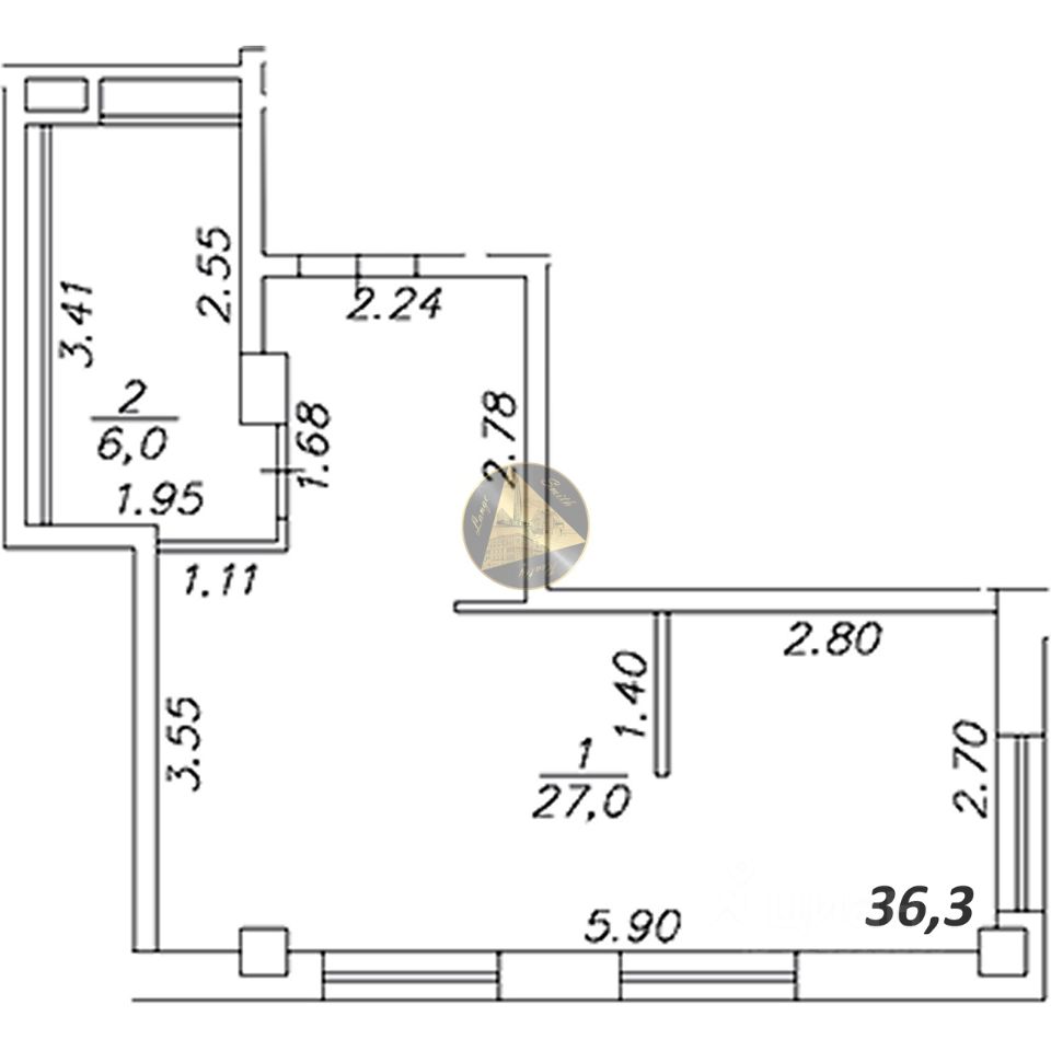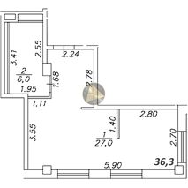 - Общая площадь квартиры 36.3 м2