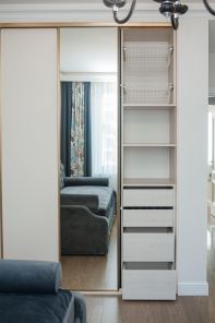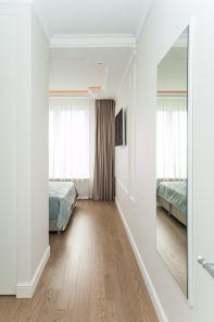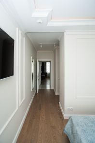 Просторная кухня-гостиная 27 кв.м. с зоной отдыха. Встроенная кухня полностью оборудована премиальной немецкой техникой NEFF. Мастер-спальня с отдельным гардеробом и санузлом с ванной-джакузи для вашего удобства. В ванной встроенный телевизор, сделанный специально для мокрых зон. Отдельная комната с диваном, рабочим столом и вместительным шкафом. Застекленная лоджия добавляет свет и уют в квартиру. В квартире есть второй гостевой санузел и душевая.