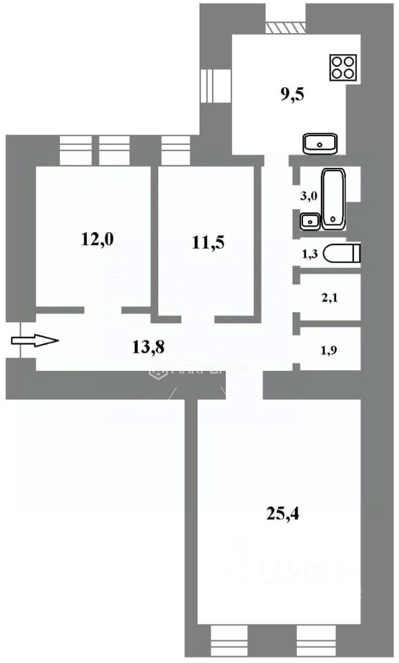 Арт. 127685313 Просторная трёхкомнатная квартира с двусторонней планировкой рядом с Выборгским парком.