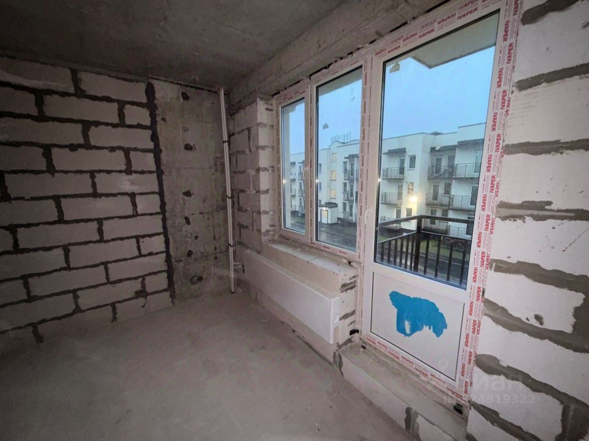 Ровные стены, проложена канализация, двухкамерные стеклопакеты и балконная дверь. Выведен радиатор на уличной стене. Вид во двор.
