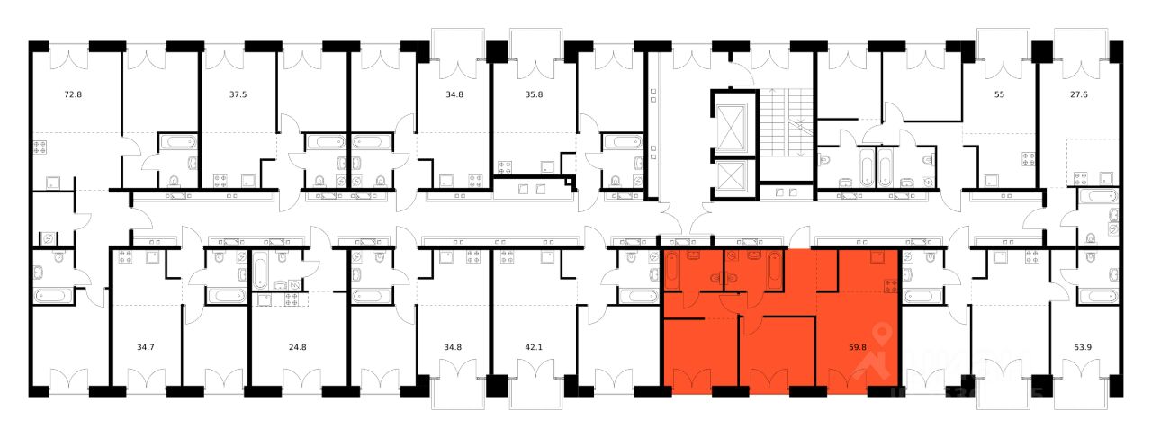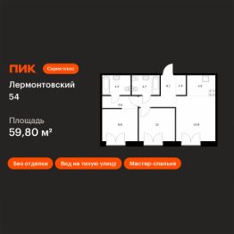 Продаётся 2-комн. квартира площадью 59,8 кв.м на 7 этаже 9 этажного дома (Корпус 2.1, Секция 6) проекта ПИК Лермонтовский 54. Светлый просторный подъезд на уровне земли, функциональная планировка, большие окна, без отделки.