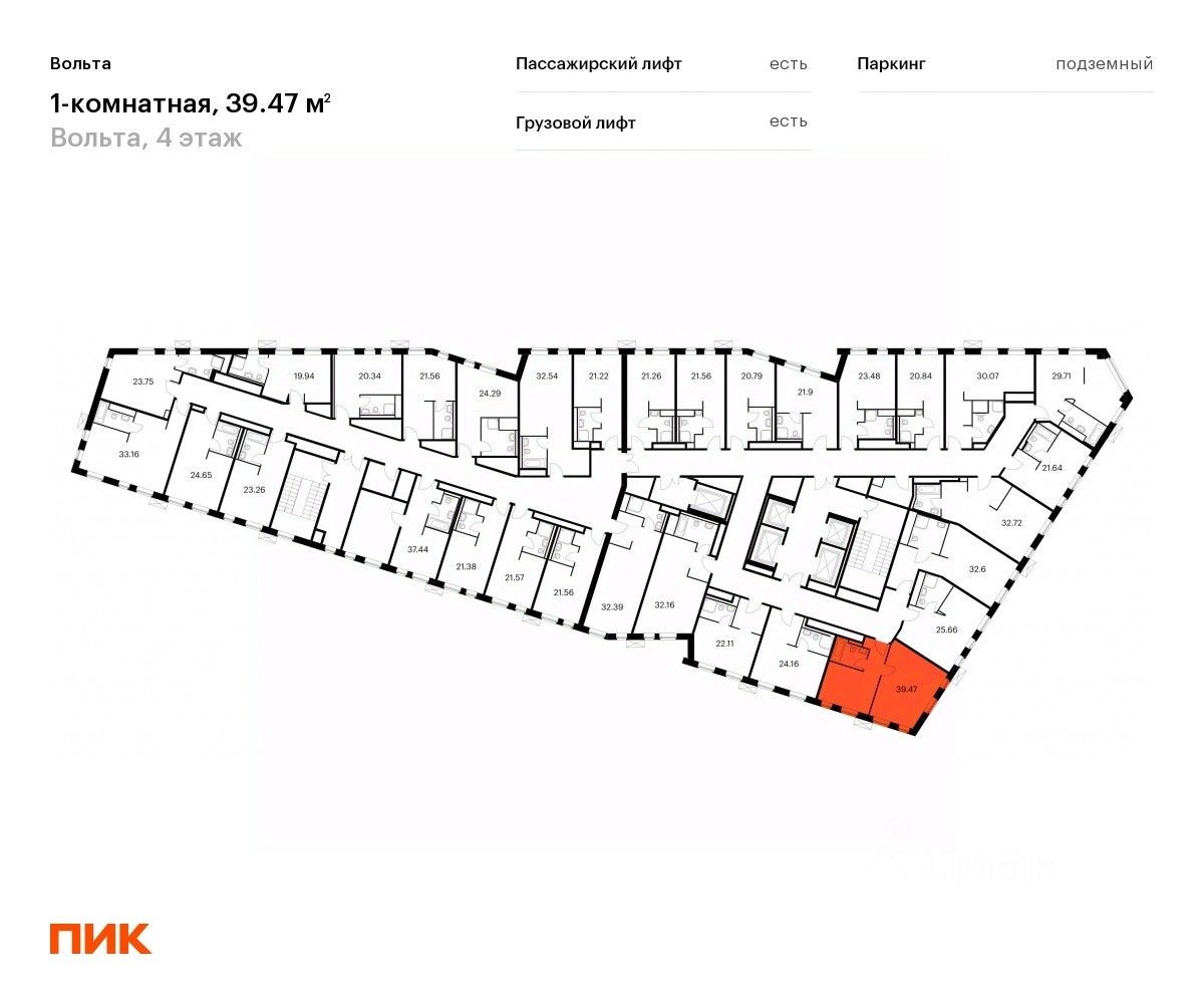 Продаются 1-комн. апартаменты площадью 39,47 кв.м на 4 этаже 15 этажного дома (Вольта, Секция 1) проекта ПИК Вольта.