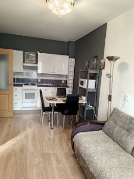 Большая кухня- гостиная с зоной отдыха площадью 17,4 квм + спальня 9,4 квм, в которой свободно размещены : 2-сп кровать, шкаф, комод, прикроватная тумбочка, туалетный стол.