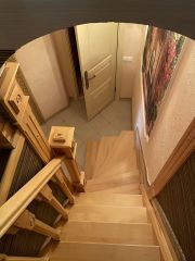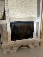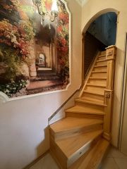 Дизайнерский ремонт, очень много природных материалов (деревянные двери, лестница, каменный камин).