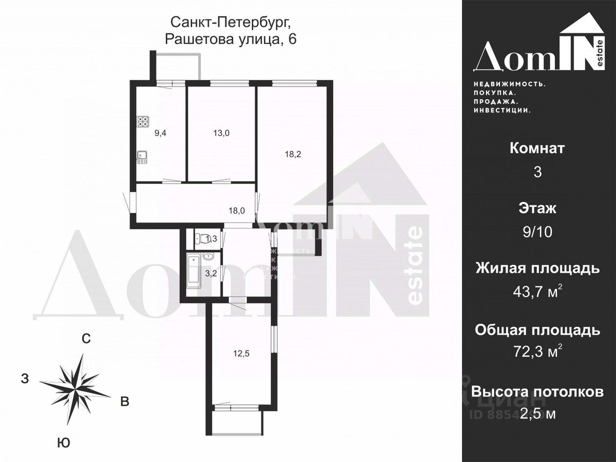 72,3 м²