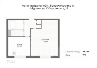Продаётся светлая 1-комнатная квартира 34.3 кв метра.